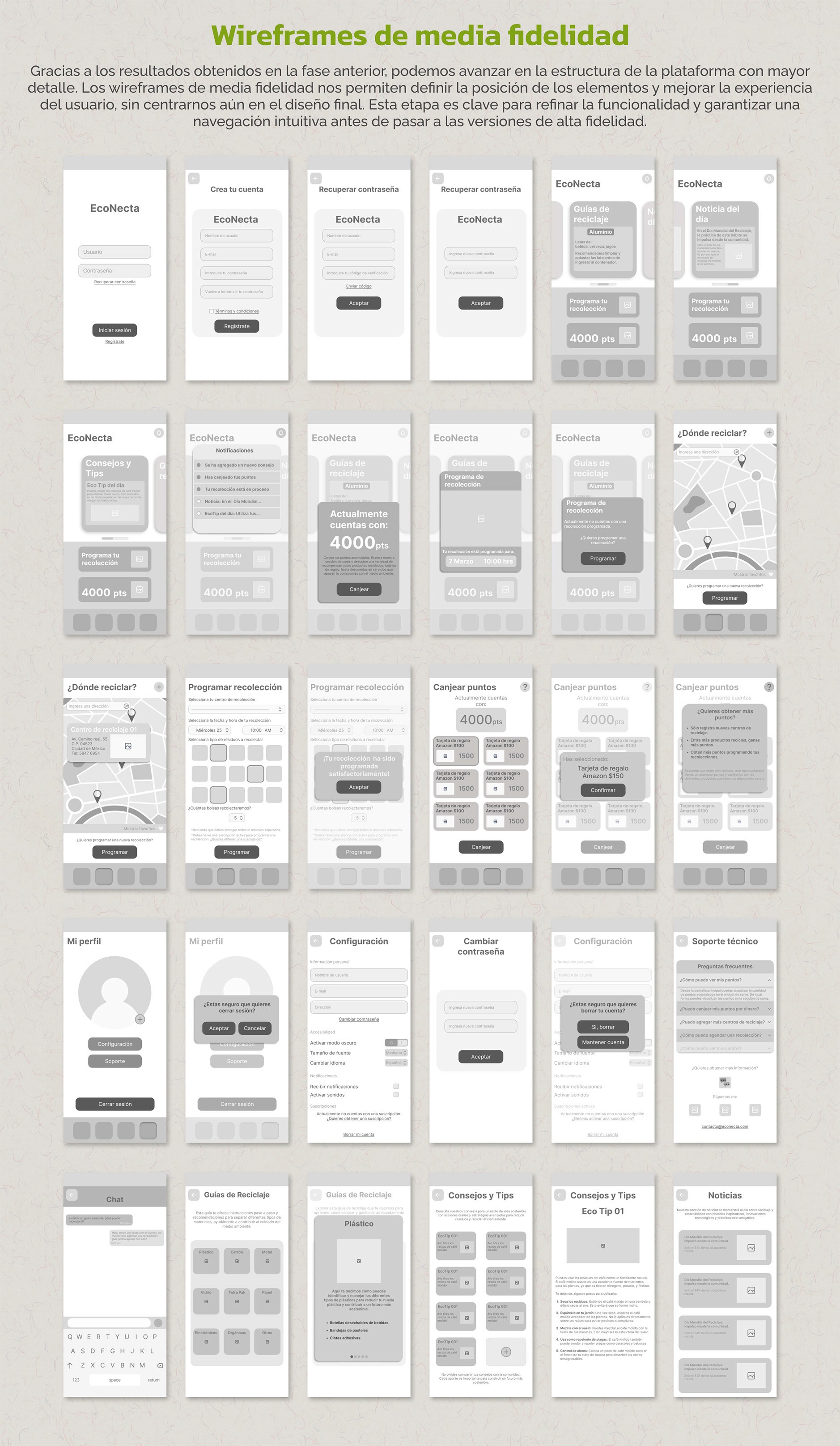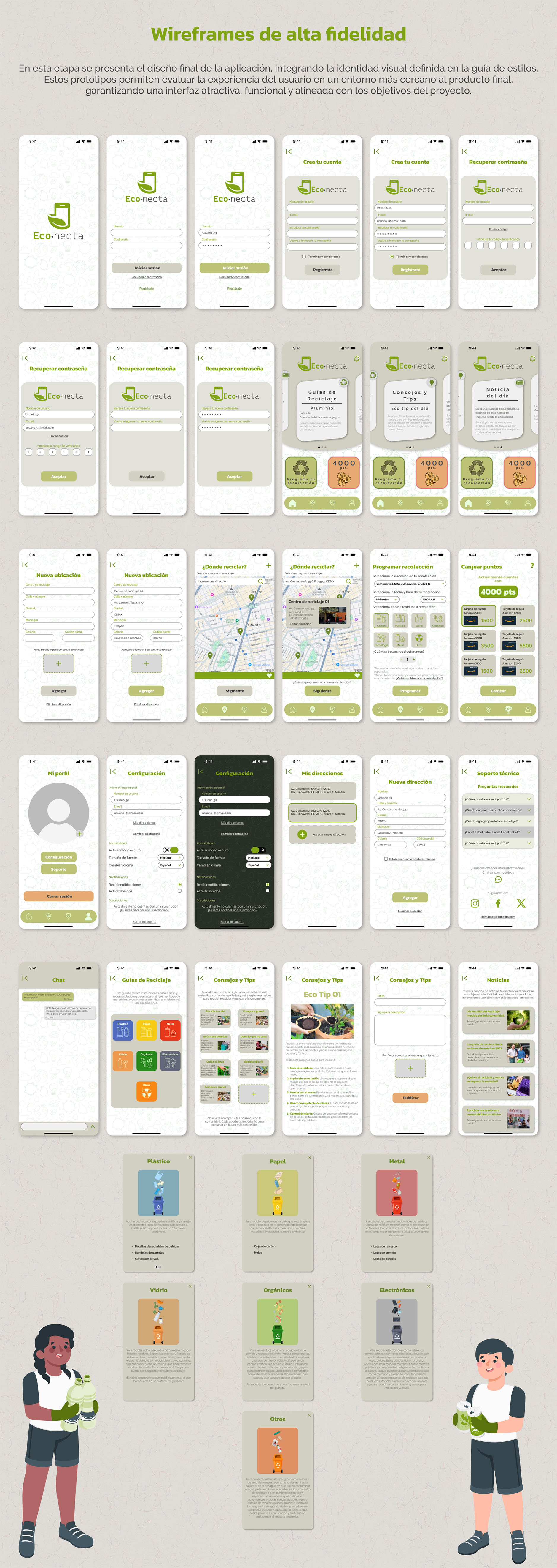 As part of the UX/UI design course, the design of an application called EcoNecta was developed to encourage recycling. Wireframes and interactive prototypes were created with the goal of enhancing the user experience and promoting sustainable habits.