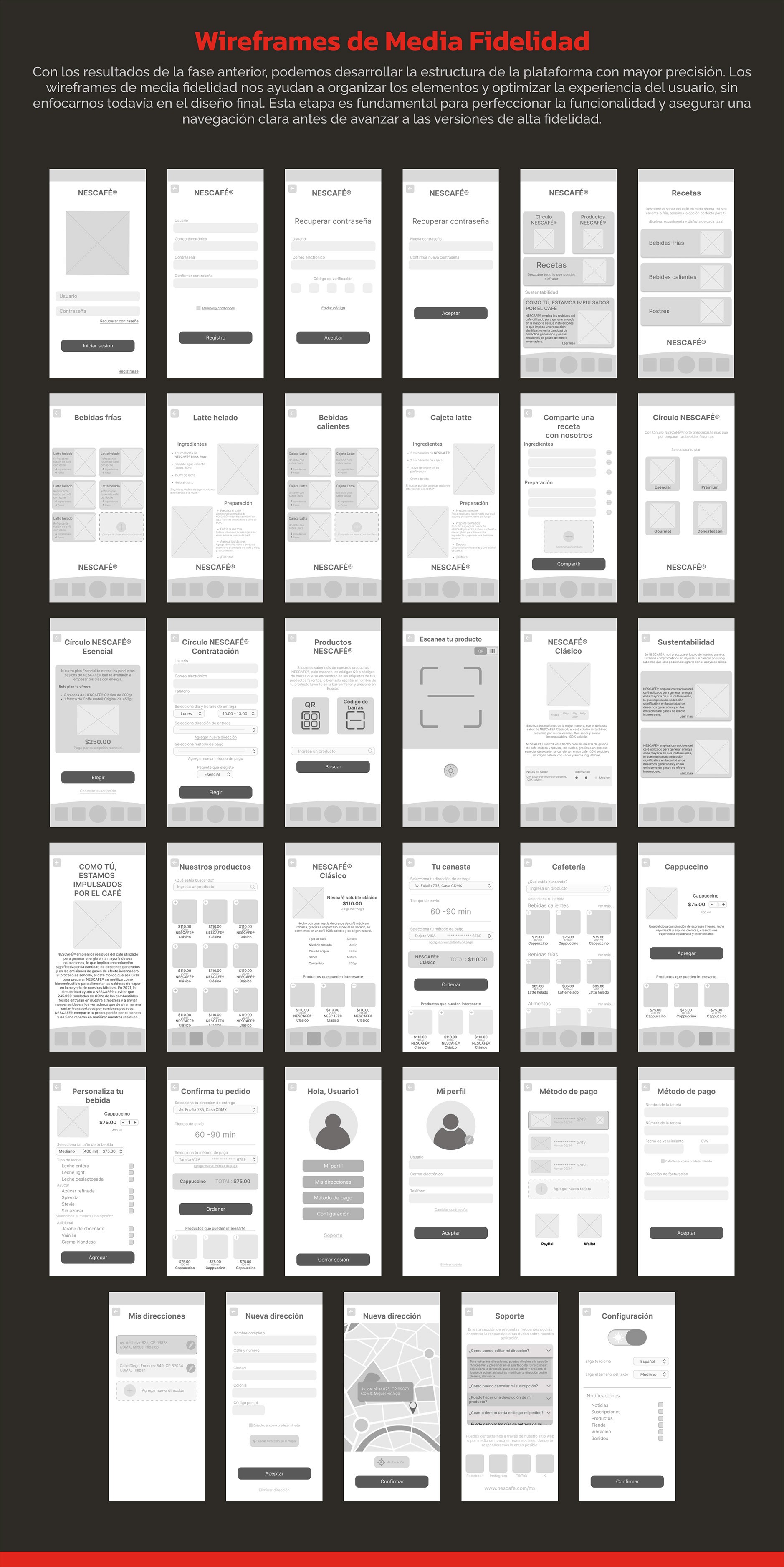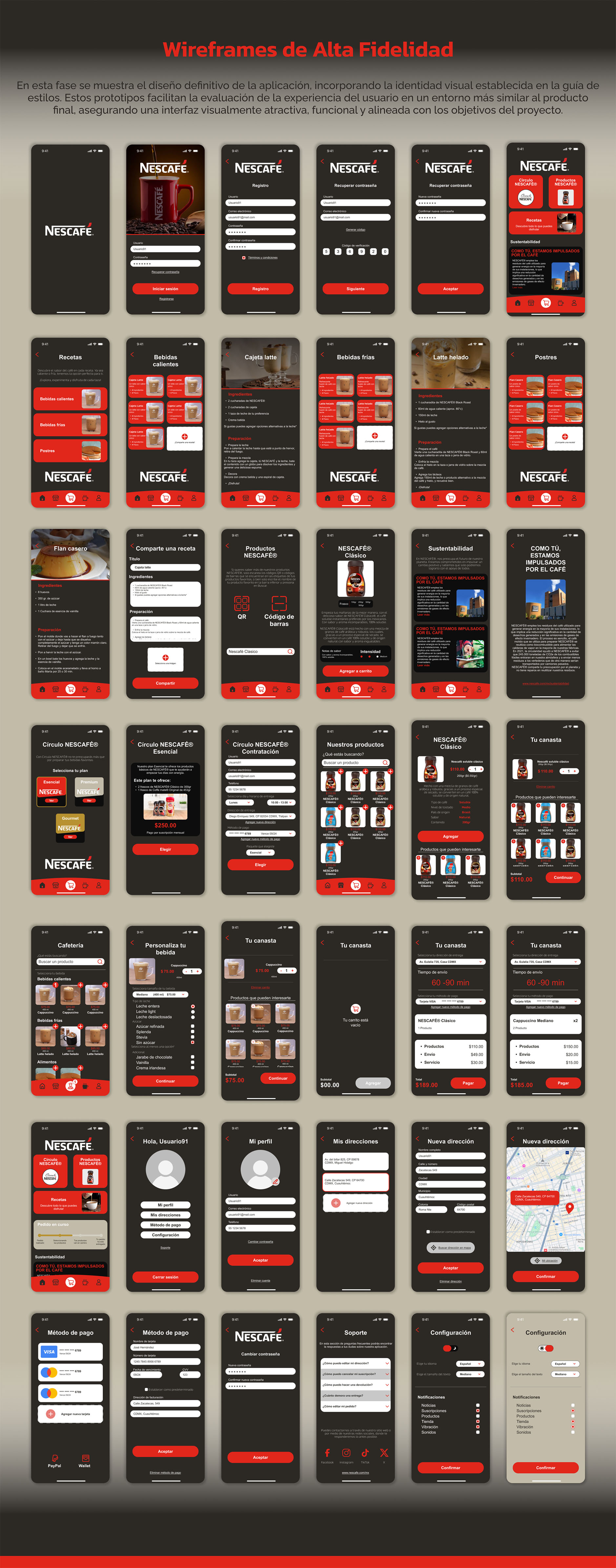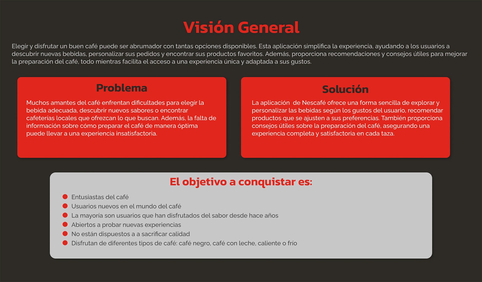 Design of Wireframes and Interactive Prototypes to enhance the user experience, along with the creation of a Business Model Canvas and Benchmark analysis as part of Nescafé’s brand repositioning campaign.