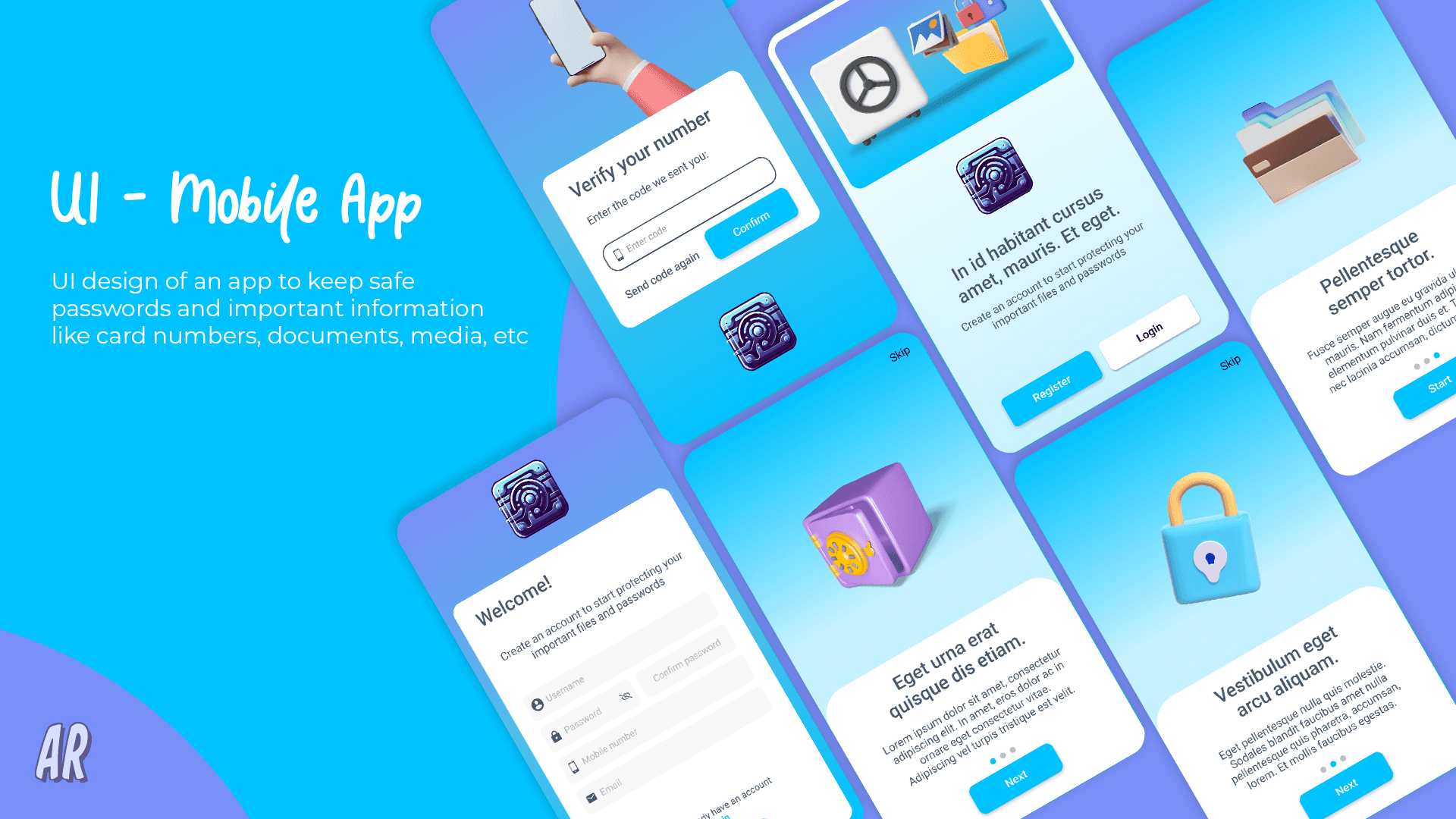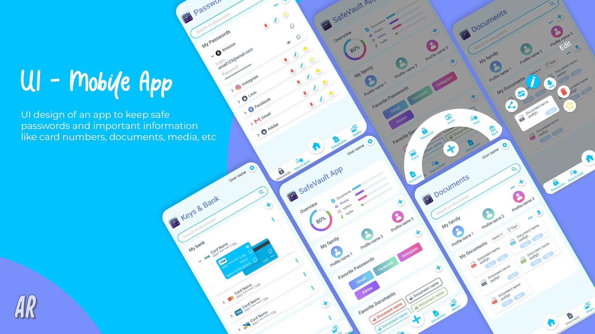 The design of a mobile application was developed, focused on securely storing and protecting passwords for various accounts. The app prioritizes security and ease of use, allowing users to manage their credentials efficiently and securely.